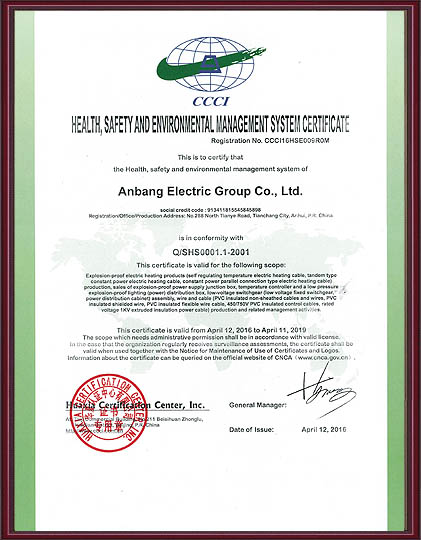 安邦電氣股份有限公司,總部位于北京市長安街,成立于2004年,注冊資金10088萬。安徽生產基地占地面積63000平方米,擁有66套各類生產線,其中進口生產線6套。國家高新技術型企業,滁州市市長質量獎企業,專精特新“小巨人”企業,擁有國家知識產權局授權的45項專利,其中發明專利28項 , 主筆《太陽能熱利用自限溫電熱帶安裝規范》行業標準,參編《自限溫電伴熱帶》國家標準、《工業和商業用電阻式伴熱系統》國家標準、《太陽能熱利用自限溫電熱帶》行業標準、《爆炸性環境 電阻式伴熱器》國家標準等7項國家標準。企業通過UL認證,國家強制性 CCC產品認證,ISO9001質量管理體系認證,ISO14001環境管理體系認證,ISO45001職業健康安全管理體系認證,Q/SHS0001.1健康、安全與環境管理體系認證,歐盟防爆ATEX認證,歐盟CE認證,RoHS認證,俄羅斯海關聯盟認證,國家防爆電氣CCC證書。產品系列:集膚伴熱系統、電伴熱系統、電加熱器、電地暖系統、集儀器儀表、電線電纜、高低壓配電柜(箱)、電纜橋架、閥門管件等等設計、制造、銷售。產品應用于航天航空、軍工、石油、石化、天然氣、機場、化工、鋼鐵、隧道、消防、養殖、融雪化冰、室內供暖、國家電網及眾多電廠等等國家重點工程。出口美國、英國、德國、俄羅斯、韓國、日本、哈薩克斯坦、烏克蘭、伊朗等眾多國家。